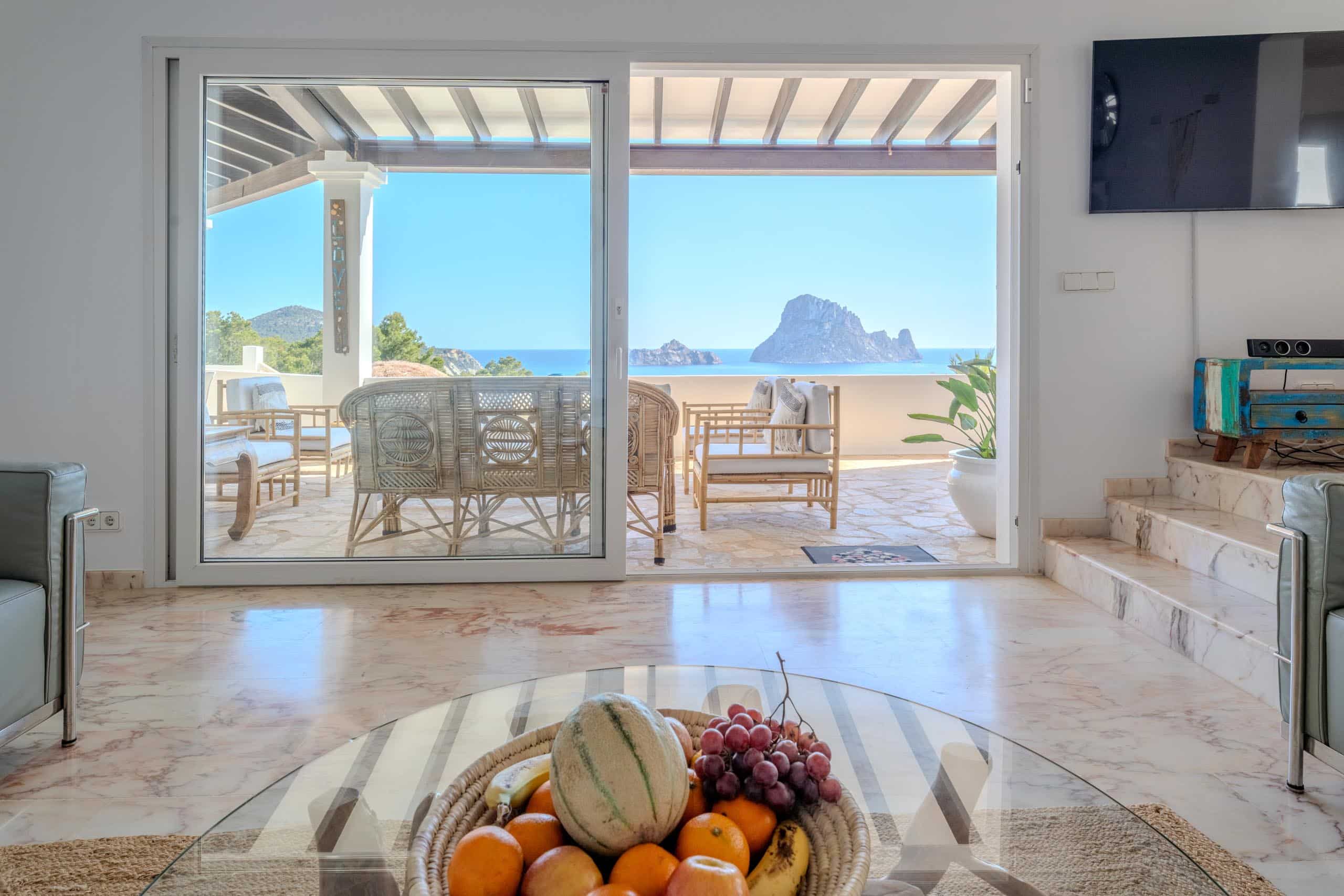 In bevorzugter Lage nahe der Küste empfängt die Villa „Es Vedrà“ ihre Gäste mit zeitloser Eleganz und mediterraner Leichtigkeit. Ruhe und Raffinesse vereinen sich hier mit einer spektakulären Aussicht auf das Wahrzeichen Ibizas – die geheimnisvolle Felseninsel Es Vedrà, deren magische Präsenz das Ambiente dieser außergewöhnlichen Villa prägt.